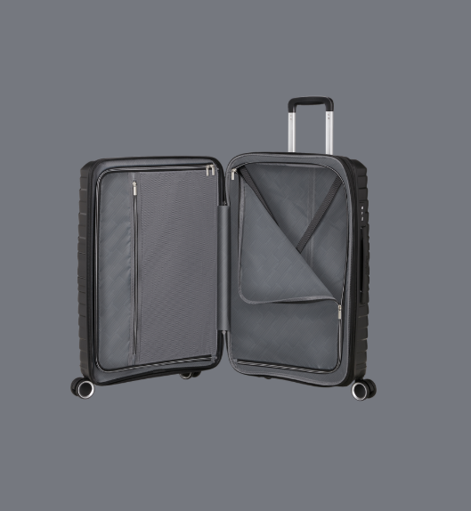 Neljä hiljaista, 360° kääntyvää pyörää takaavat sujuvan liikkumisen, ja teleskooppinen vetokahva tekee laukun käsittelystä miellyttävää. Sisätila on jaettu toiminnollisesti vetoketjullisella väliseinällä ja joustavilla pakkausremmeillä, jotka pitävät tavarat paikoillaan. Moderni Flytwist-muotoilu yhdistää tyylin ja käytännöllisyyden luotettavaksi matkakumppaniksi.