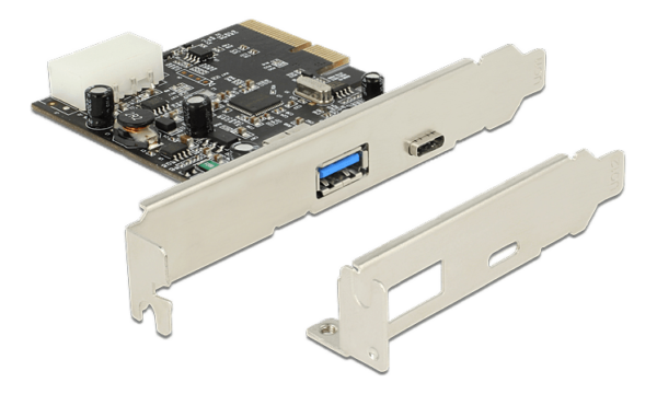 DeLOCK PCI-Express x2 3.0 kortti, 1xUSB Typ C 3.1 Gen 2, 1xUSB Type A 3.1 Gen 2, Asmedia ASM1142 siru, 4-pin Molex
