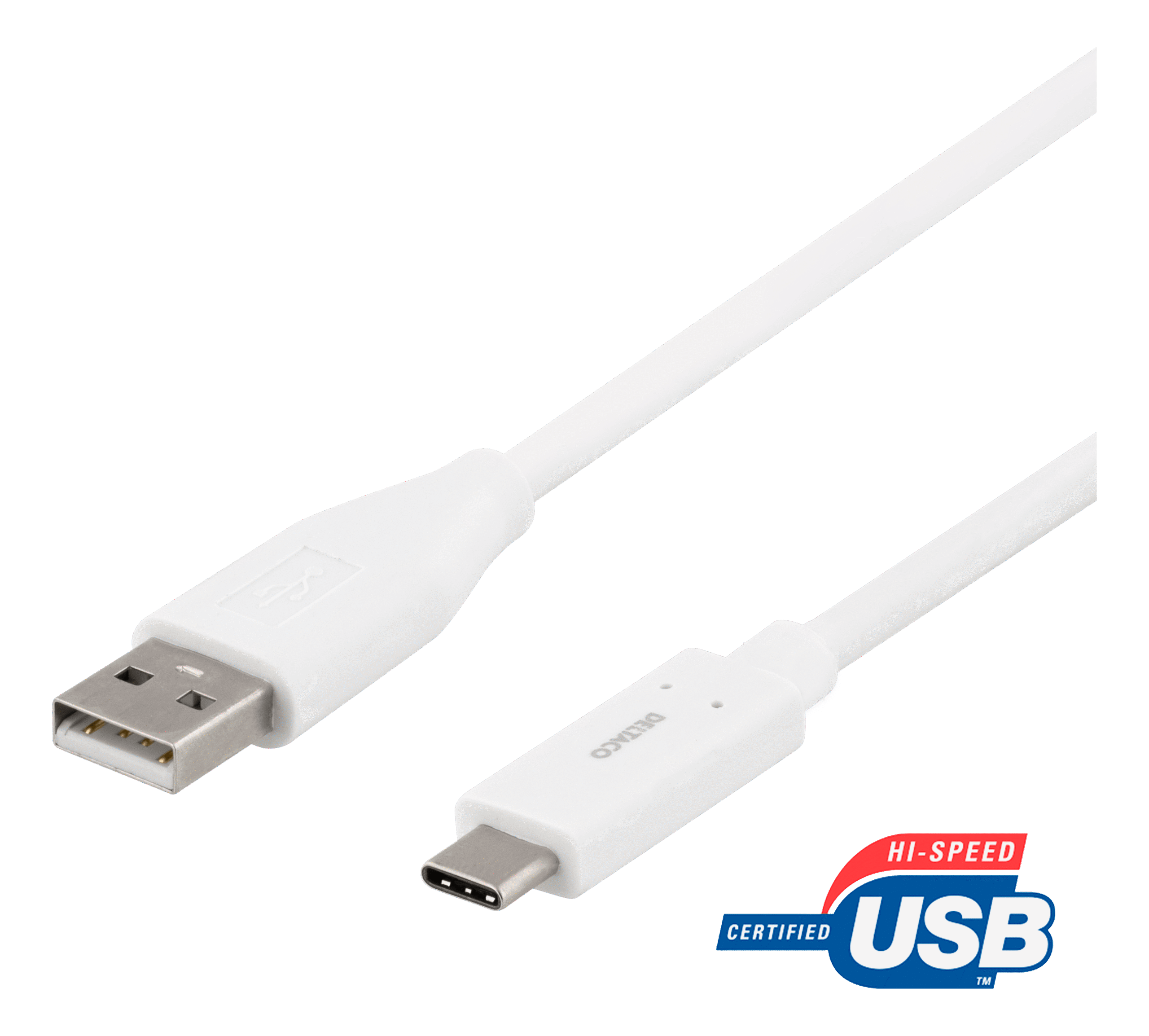 DELTACO USB 2.0 -kaapeli, Type A – Type C uros, 0,5m, valkoinen