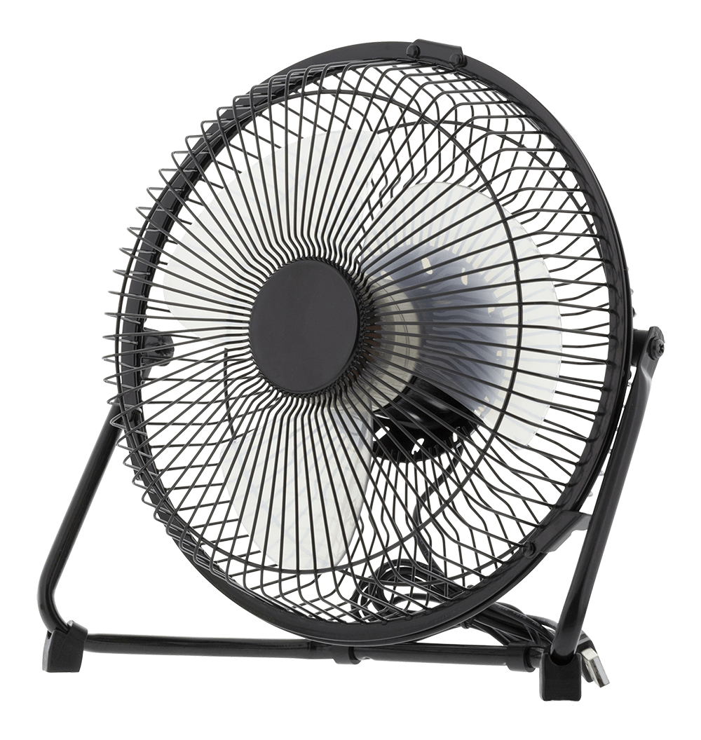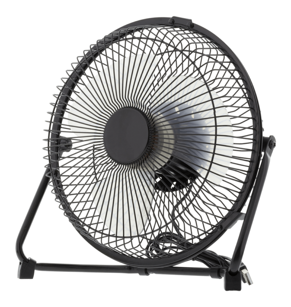 Pöytämallinen USB-tuuletin, jossa muoviset propellit. Tuulettimen nopeutta voidaan säätää kahdelle eri nopeudelle.