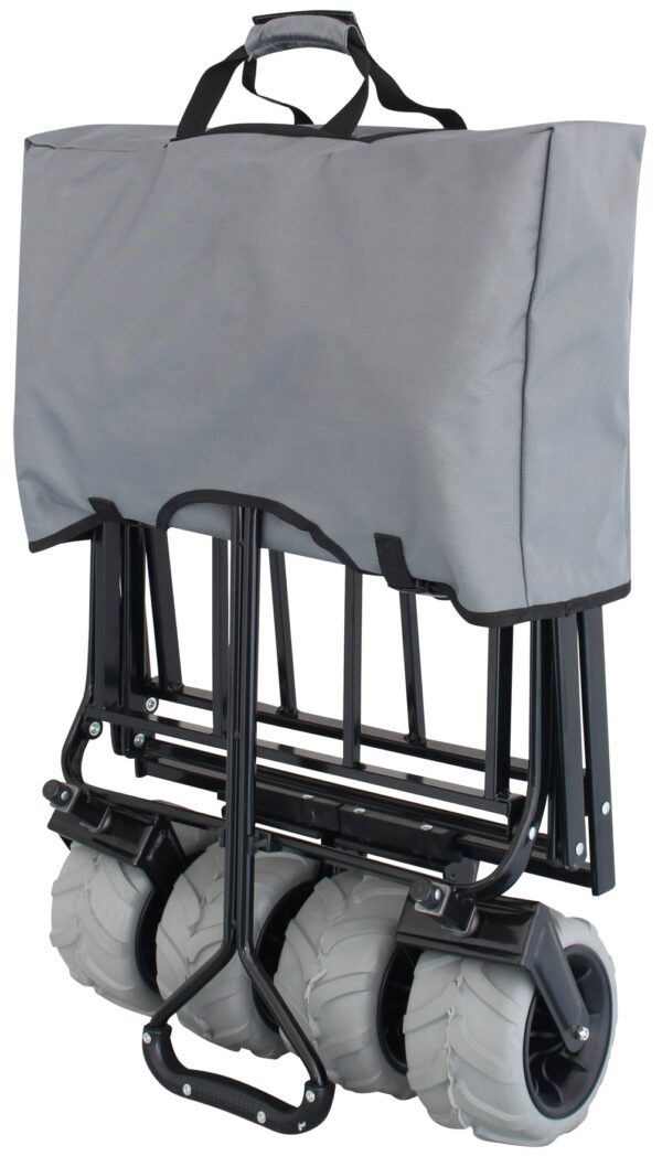 Kokoontaittuva rantakärry, joka on erityisesti suunniteltu käytettäväksi hiekalla. Suuret pyörät takaavat kevyen kuljetuksen ja estävät vaunun jumittumisen hiekkaan. Helposti taitettava ja vie vähän säilytystilaa.