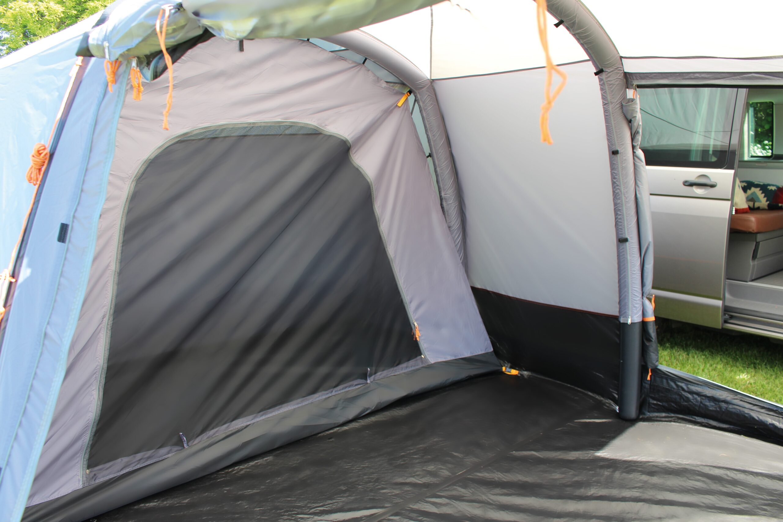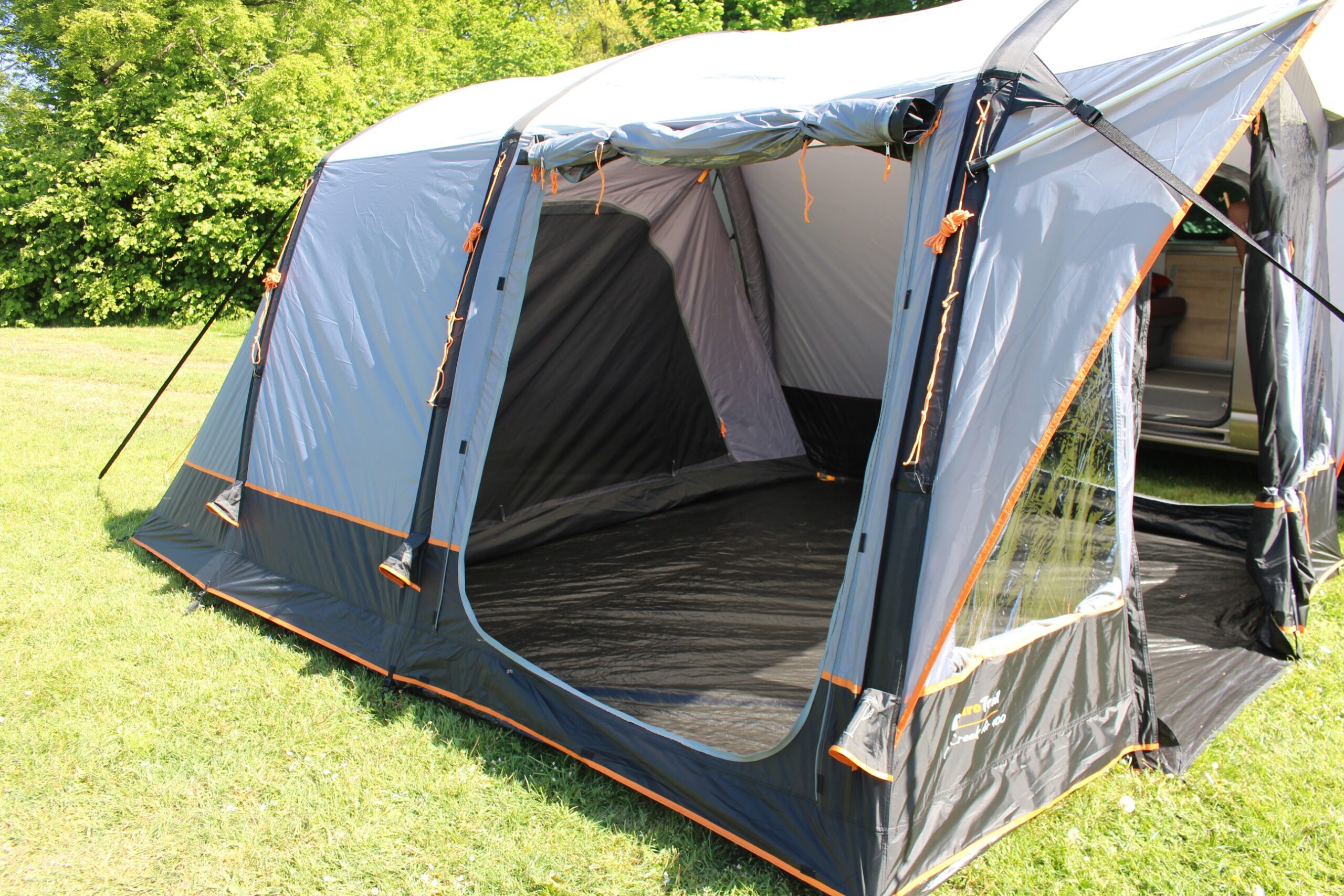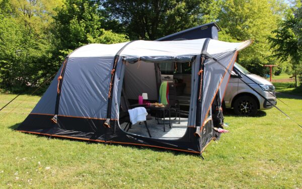 Tilava ilmatäytteinen tunneliteltta, joka pystytetään rinnakkain auton tai retkeilybussin kanssa. Teltassa on suuri oleskelutila kiinteällä pohjalla sekä mukana tuleva kahden hengen sisäteltta (140 x 290 cm). Ihanteellinen lisänukkumapaikaksi kahdelle hengelle tai lisäsäilytystilaksi.