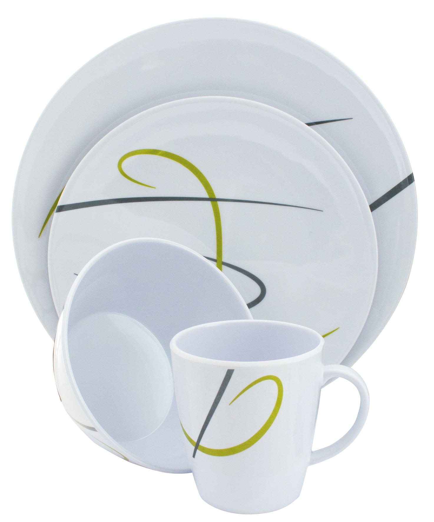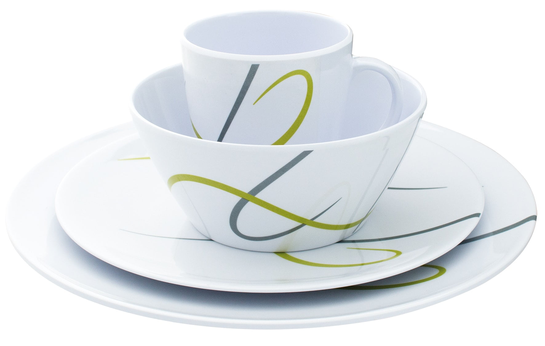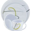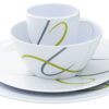 16-osainen astiasto, jossa on alkuperäinen ja trendikäs muotoilu. Sarja on valmistettu kestävästä melamiinista, joka sopii astianpesukoneeseen. Kaikkien tuotteiden alaosassa on erityinen liukastumisen estävä rengas liukumisen estämiseksi. Sarja sisältää: 4 x ruokalautanen ø 28 cm 4 x pieni lautanen ø 23 cm 4 x kulho ø 15 x 7 cm 4 x kuppi 310 ml