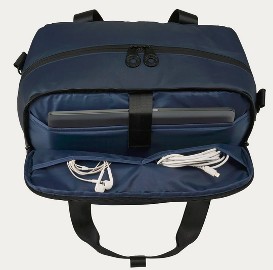 Tekniikan säilytys: Erillinen pehmustettu läppärilokero jopa 13,3 tuuman kokoisille laitteille.