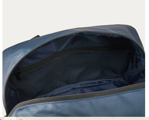 Tilava sisätila: 20 litran sisätilavuus nousee 24 litraan laajennettuna. Repeämätön sisävuori, jossa on 3 vetoketjullista sisätaskua ja 2 avointa taskua.