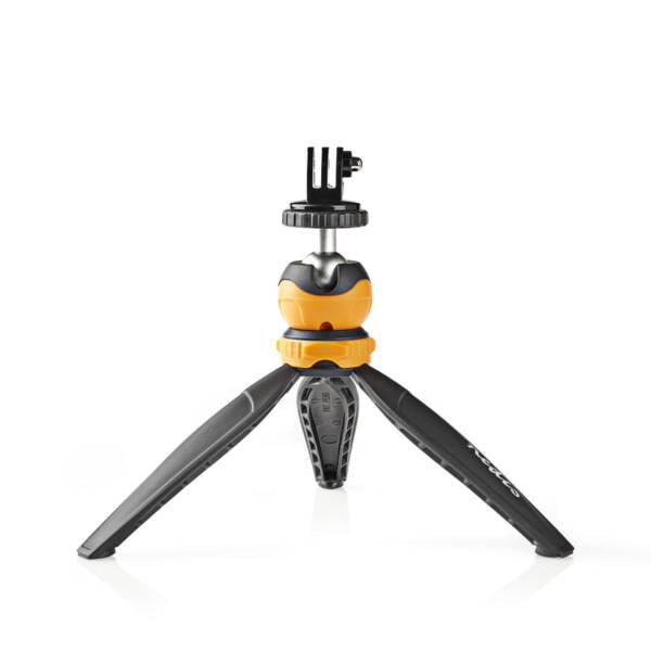 Tämä Nedisin jalusta on all-in-one kolmijalka ja stabilisaattori, vakaaja. Sisältää. älypuhelimen pidike ja actioncam-teline. Käytä sitä parhaan mahdollisen kuvanlaadun saavuttamiseksi. Jalkoja voi säätää kääntämällä keskimmäistä rengasta. Taita jalat yhteen ja käytä minijalustaa tukijana.