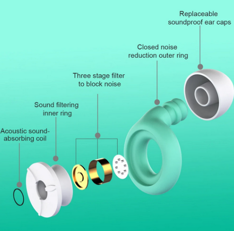 2. Kaksitoiminen melunvaimennus: Koe rauha korvasuojakorvatulppiemme avulla, jotka vähentävät melua älykkäästi fyysisillä keinoilla. Ne on suunniteltu parantamaan äänen vaimennusta, varmistaen syvän unen ja rauhallisen keskittymisen meluisissa ympäristöissä tai uintiharjoituksissa erinomaisen vedenpitävän rakenteensa ansiosta.