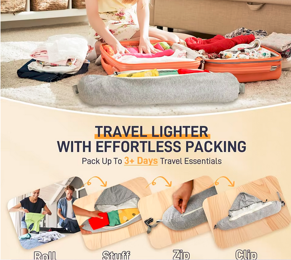 Matkusta kevyesti, käytä rahaa oikein: Kuka haluaa maksaa suuria maksuja ylipainoisista matkatavaroista? Täytettävän matkatyynyn avulla voit pakata kätevästi kolmen päivän vaatteet, jolloin laukkusi pysyvät kevyinä ja lompakkosi tyytyväisenä. Säästösi voidaan muuttaa ikimuistoisiksi matkakokemuksiksi – olipa kyseessä sitten herkullinen ateria, odottamaton retki tai erityinen matkamuisto. Se on enemmän kuin tyyny; se on lippusi rikkaammalle matkalle ilman ylimääräistä matkatavaraa.
