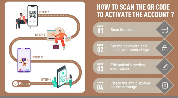 Asenna helposti henkilökohtainen lääketieteellinen rannekkeesi. Skannaa vain QR-koodi, aseta salasana ja aloita henkilökohtaisten tietojesi muokkaaminen. Syötä puhelinnumerosi ja sähköpostiosoitteesi, napsauta ”Aktivoi” avataksesi perheesi terveystiedot. Ei sovellusta tarvita!