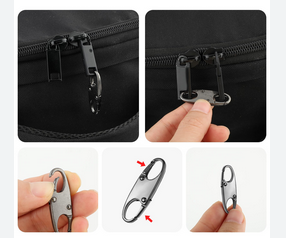 Vetoketjun vetimiin, lukkoklipsi. Lukitset vetoketjut matkalle kätevästi. Hidastaa varkauksia. Sopii käsilaukkuun, reppuun, matkalaukkuun, laukkuihin jne. Varkauksien ehkäisyyn, anti-theft lock zipper. Molemmista päistä avautuva.